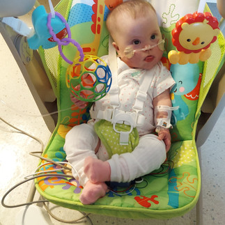 NOTE: Any onesie or sleeper you put on your child will need to be snap buttons. They will have all kinds of tubes and wires on them for several days after surgery and the buttons on the clothes allows for the tubes and wires to pass between them. We didn't put any clothes on our daughter until she was moved to the "step-down" room or the recovery room which was on the second day after surgery. We started off with just leg warmers and socks. Once her chest tube was removed we began putting the onesies and/or sleepers on her. You can put them in any type of clothing for going home. We got a cute heart warrior bow and heart warrior onesie to proudly take her home in.